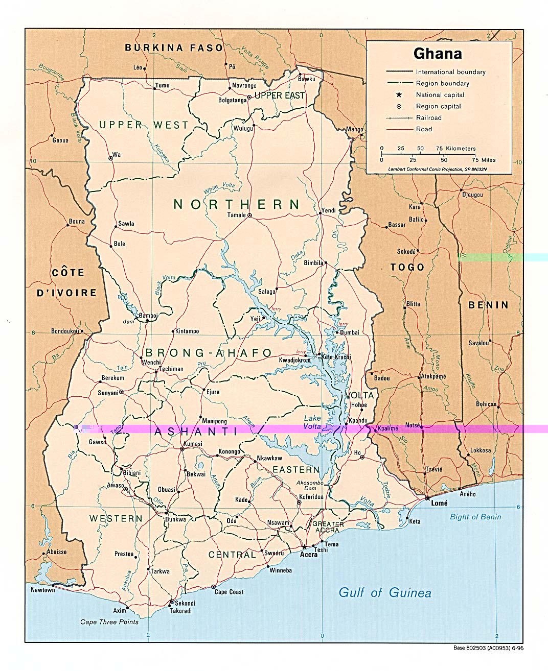 Hier eine Übersicht von Ghana, das an der Westküste Afrikas liegt:
